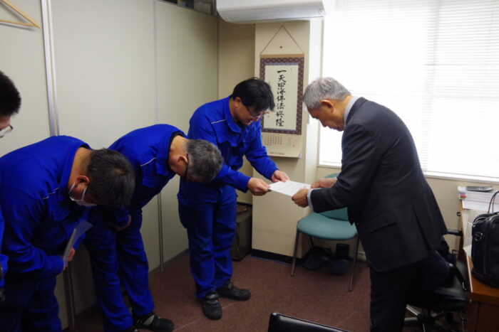 当社は労働組合を結成しており、一時金及び昇給、業務改善要望等を執行部役員より代表取締役へ要望書を提出しております。