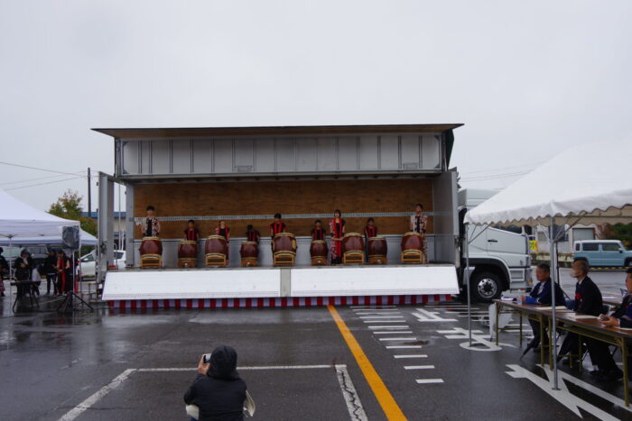 荷台を活用して、太鼓の演奏が披露されました。